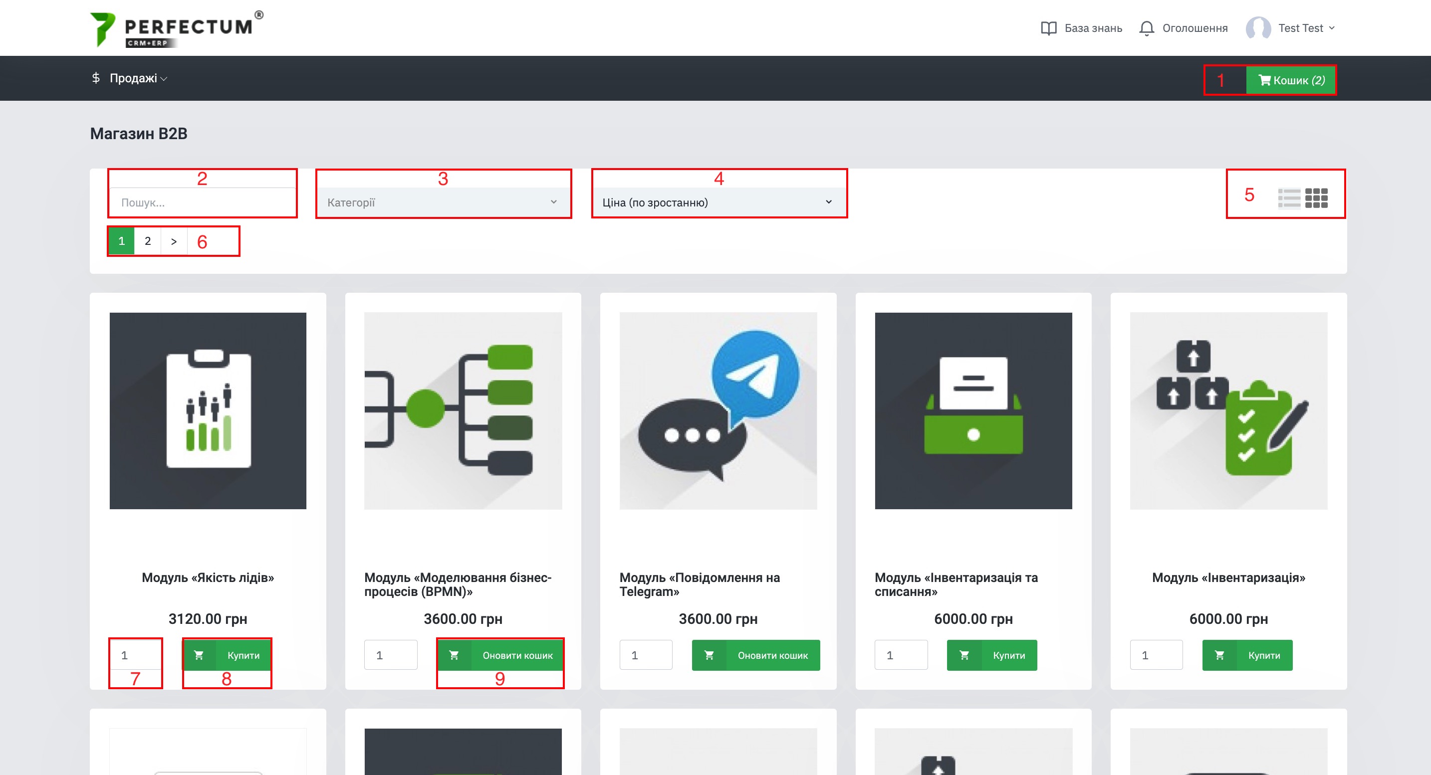 - Кнопка "Кошик" - для переходу до вибраних модулів для покупки.