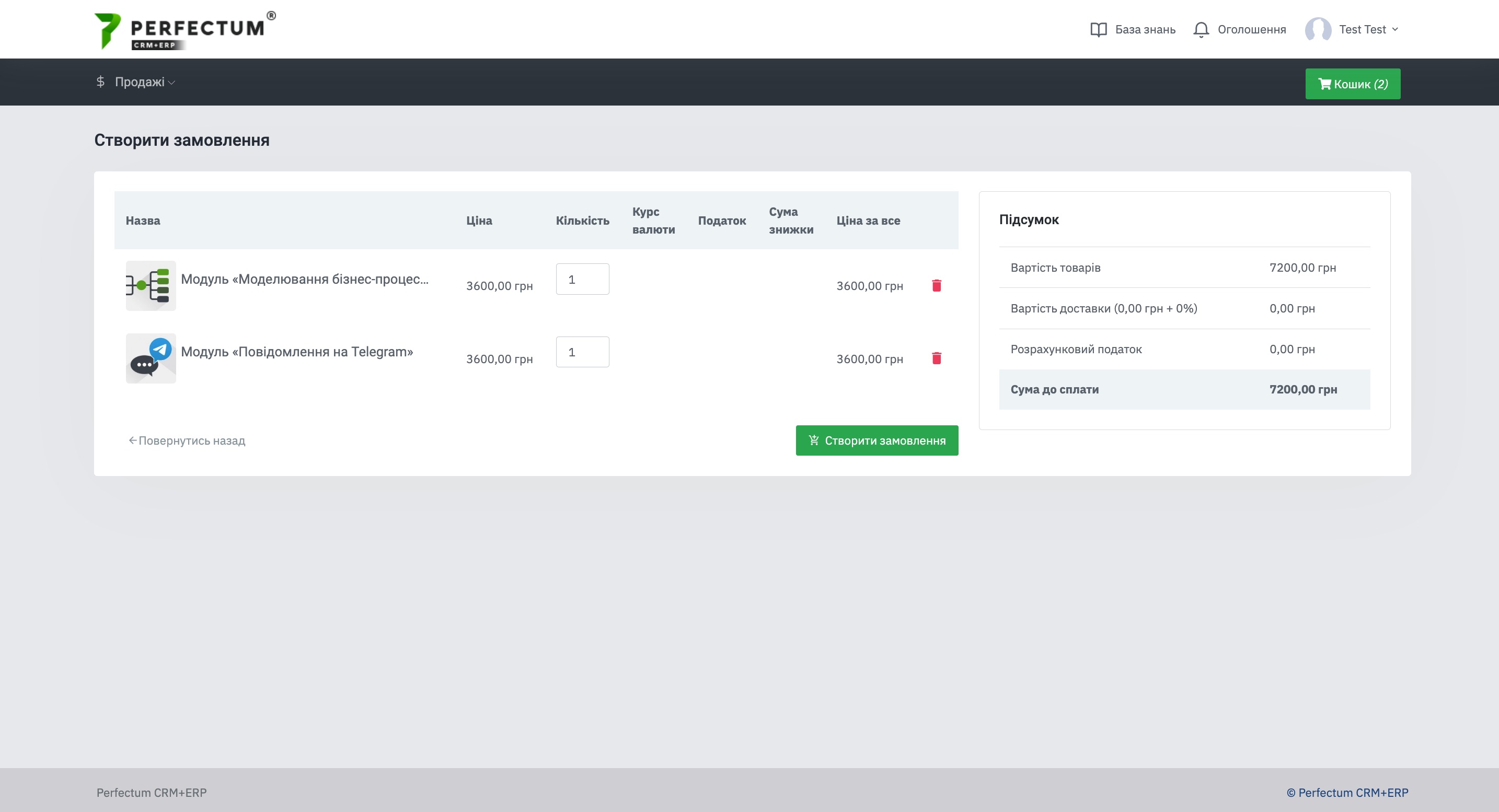 У цьому розділі Ви можете ознайомитися з модулями, які Ви додали, так само змінити їх кількість та видалити із замовлення.