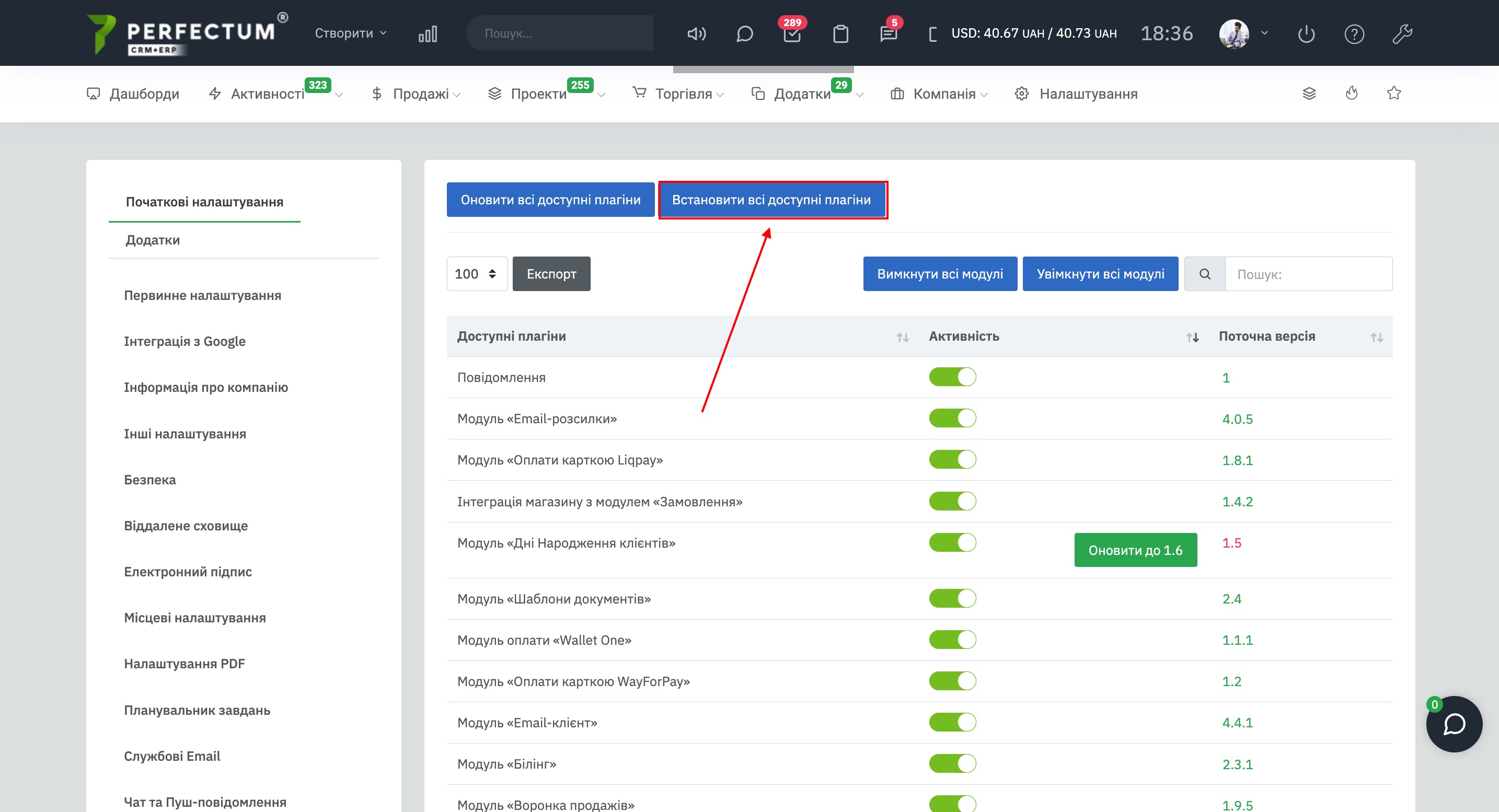 Якщо Ви придбали кілька модулів, натисніть кнопку "Встановити всі доступні модулі".