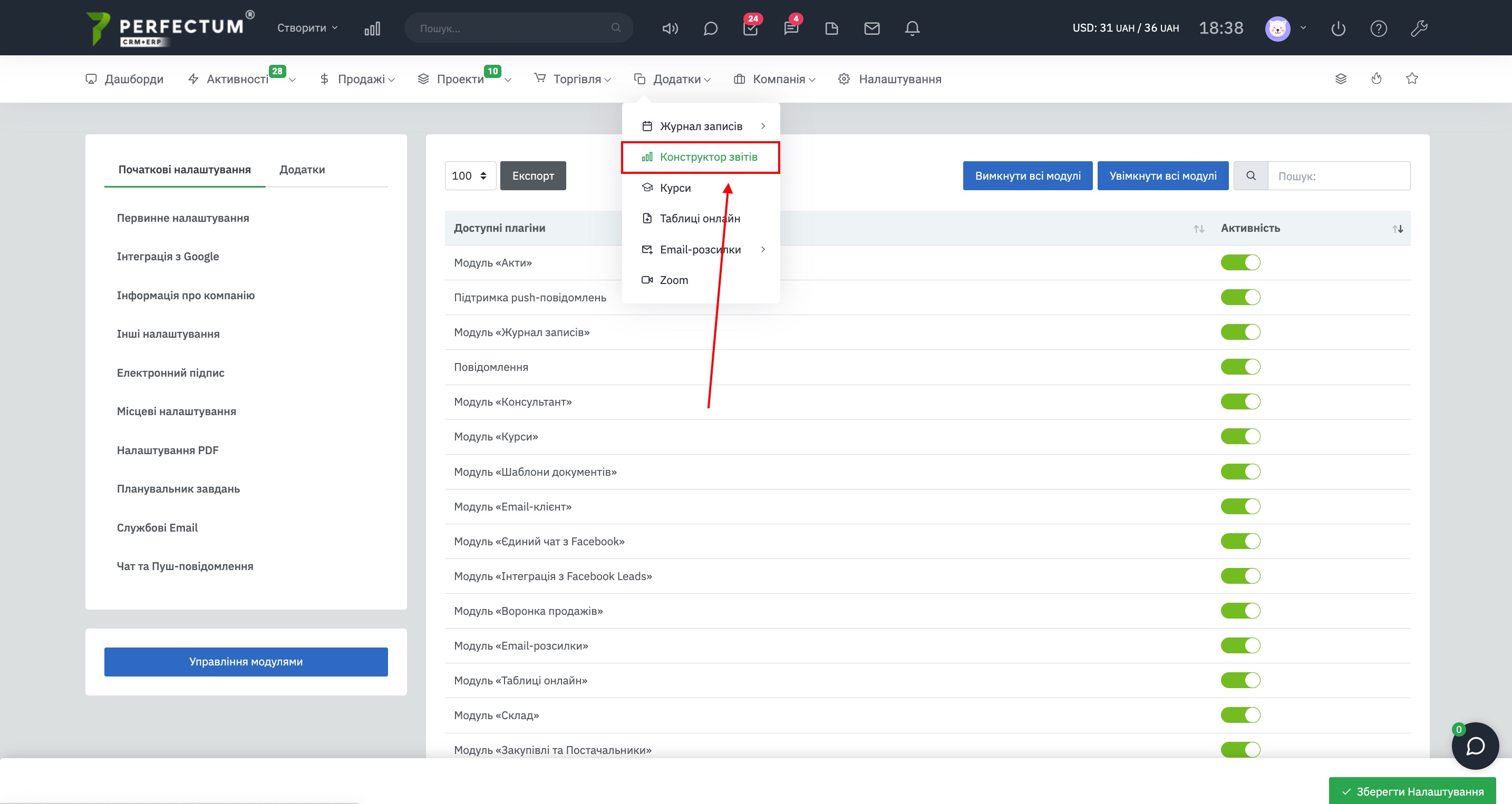 - Замовити інтеграцію Perfectum CRM із зовнішніми сервісами або програмами;