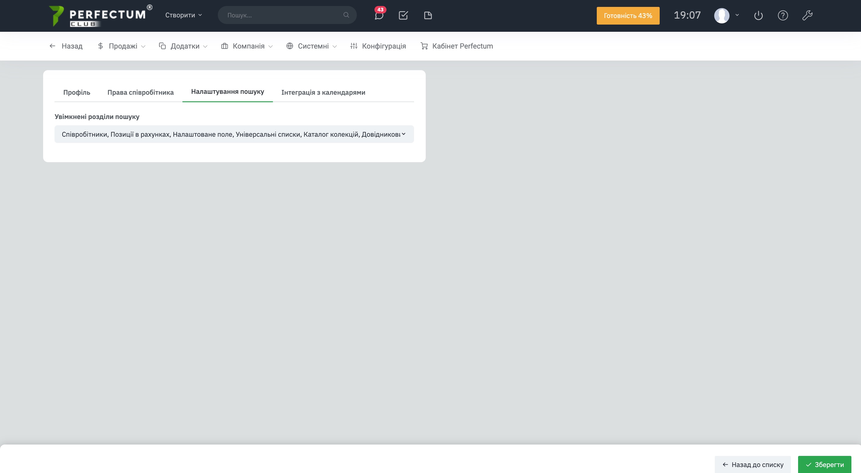 Перейдіть у вкладку «Налаштування пошуку», щоб задати по яких розділах співробітнику буде доступний розумний пошук.
