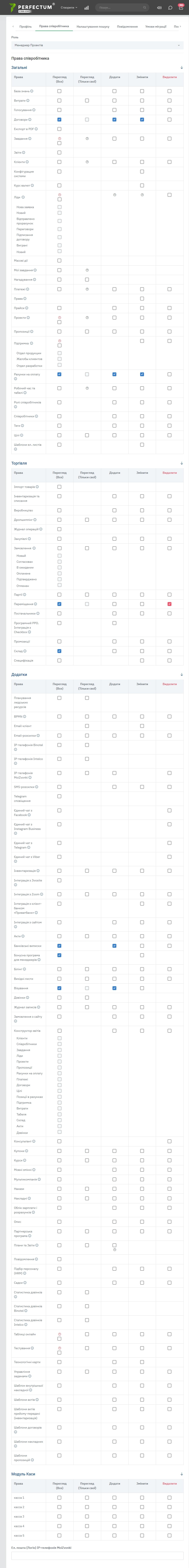 • У цьому меню можна дати співробітнику контроль над управлінням касами. Додавати, змінювати, видаляти їх.