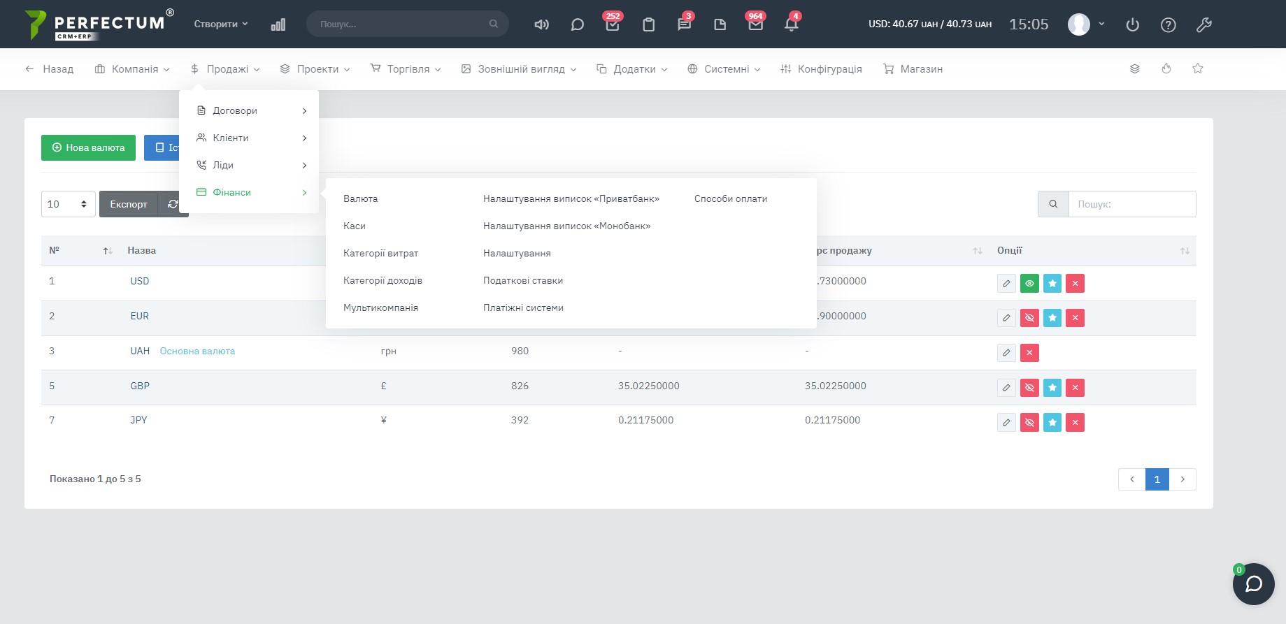 Для роботи з налаштуваннями фінансів перейдіть до: "Налаштування -> Продажі -> Фінанси".