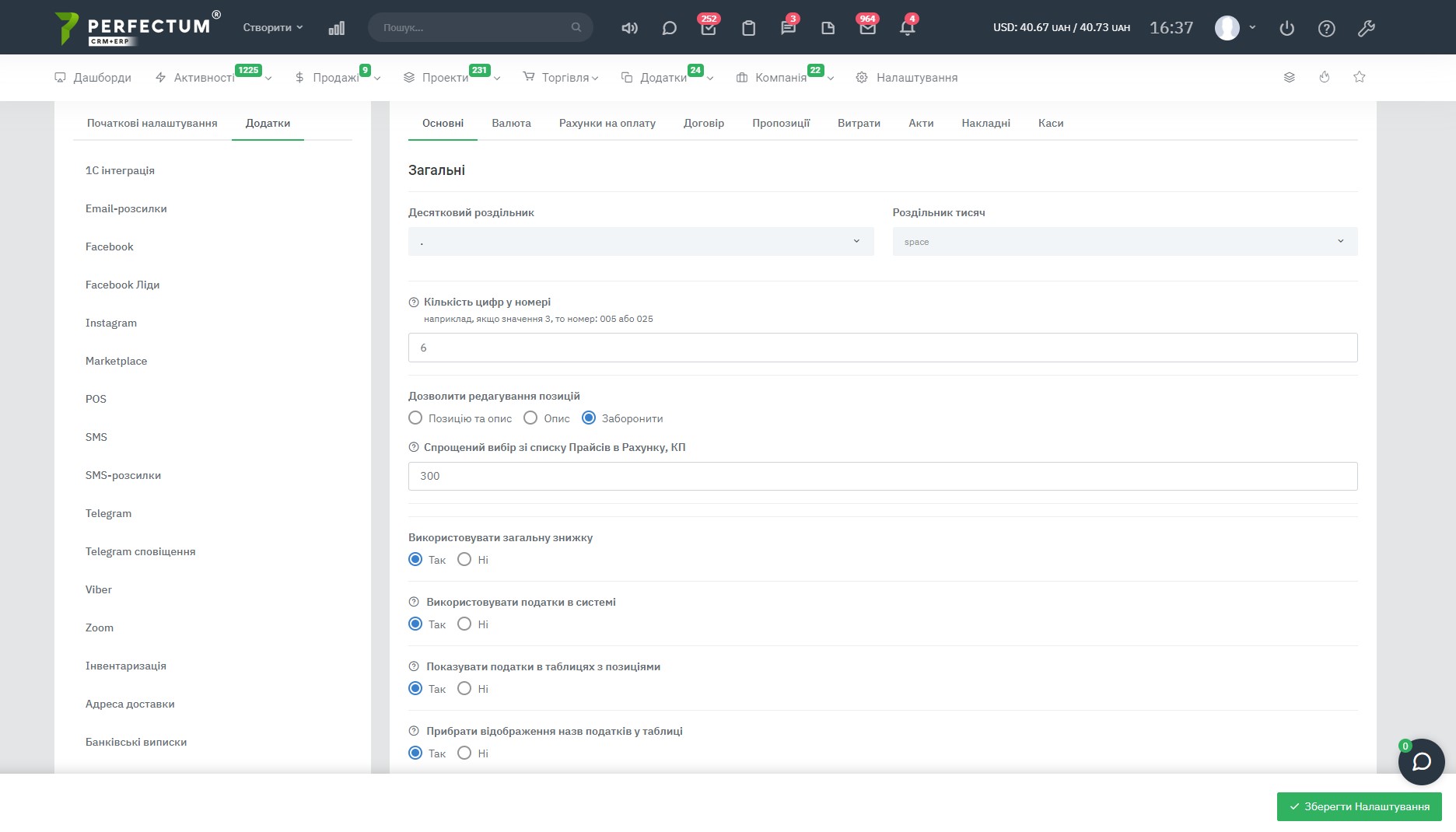 Додаткові налаштування фінансів доступні шляхом: "Налаштування -> Конфігурація -> Додатки -> Фінанси".