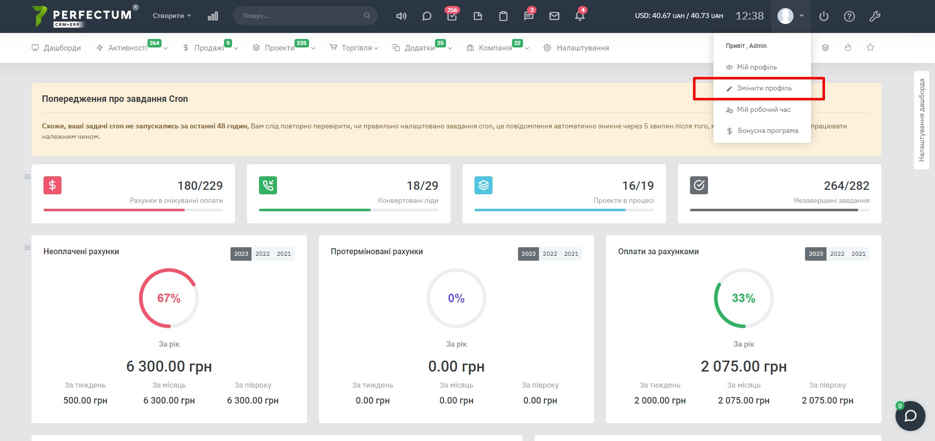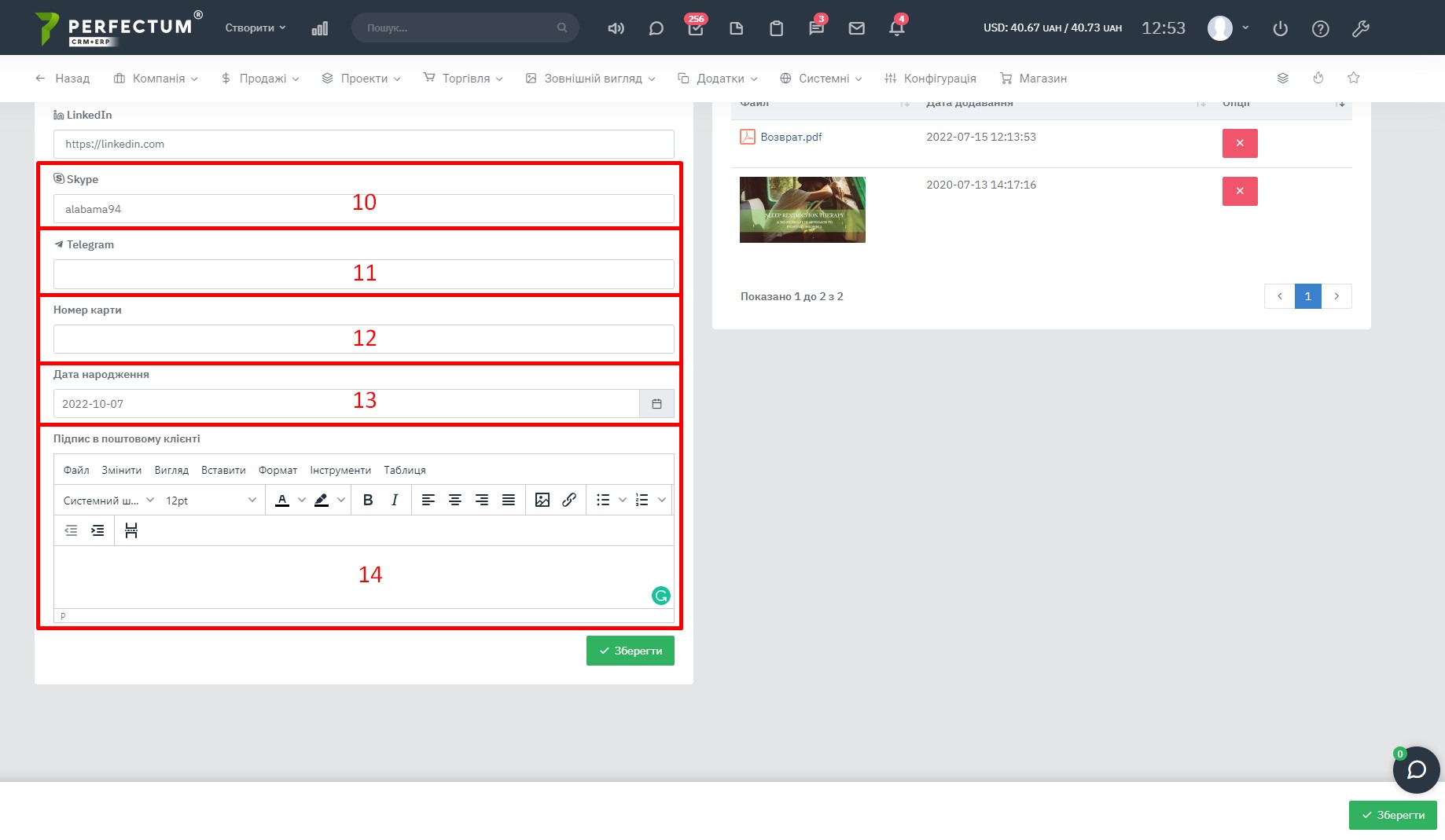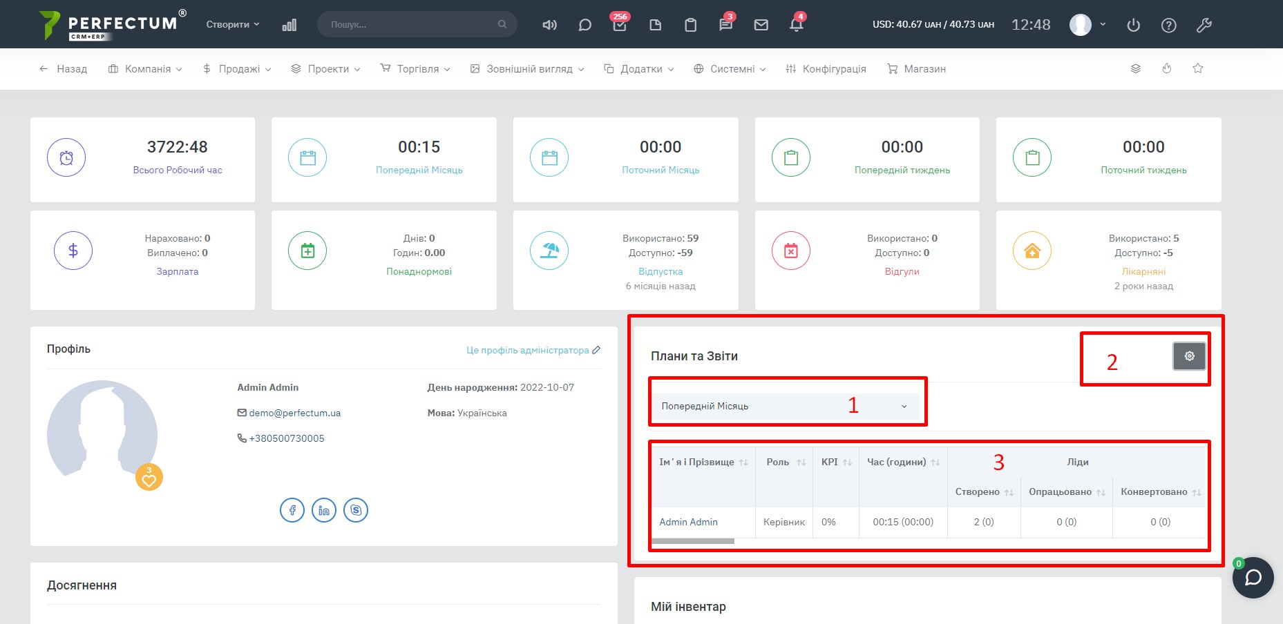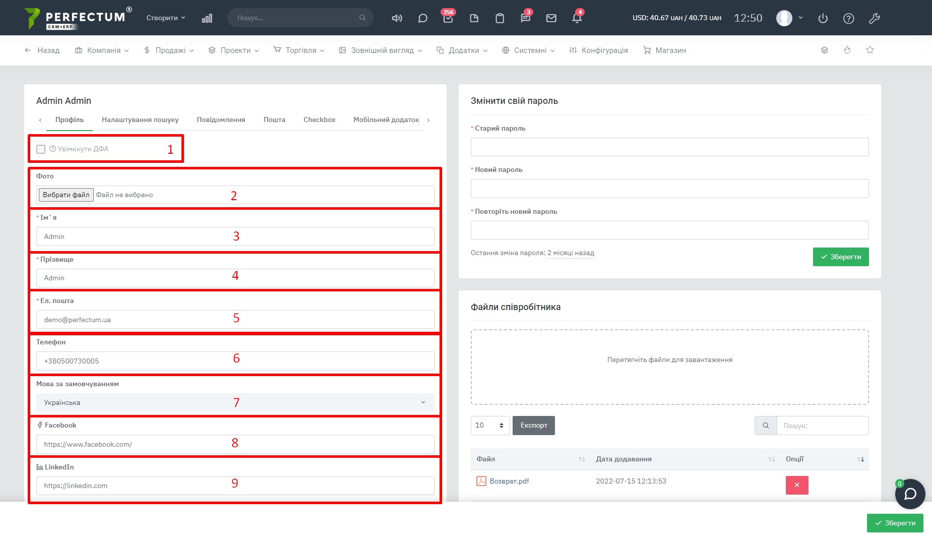 Співробітникам доступна опція редагування власного профілю при натисканні кнопки "Змінити профіль" на верхній панелі.