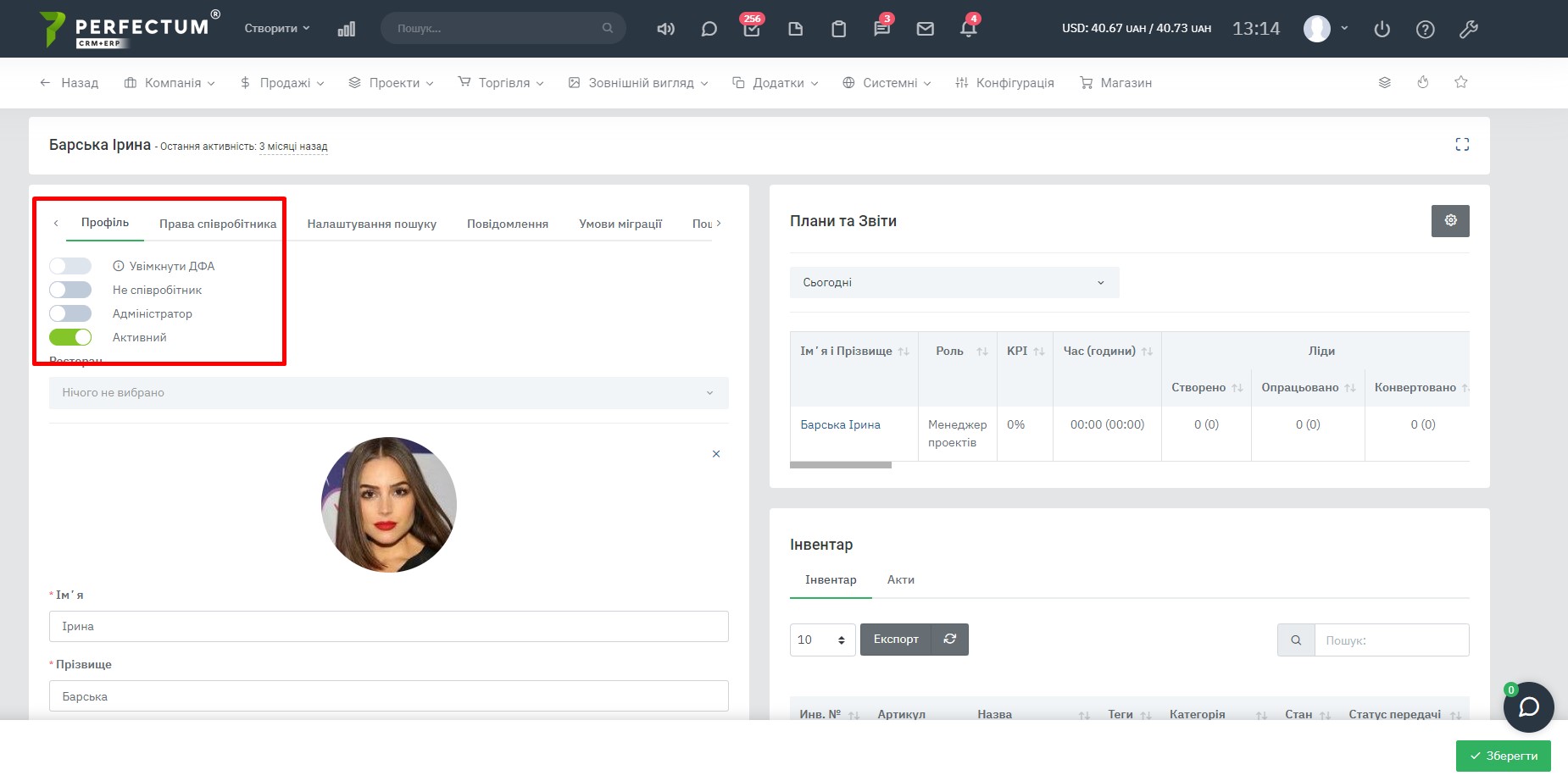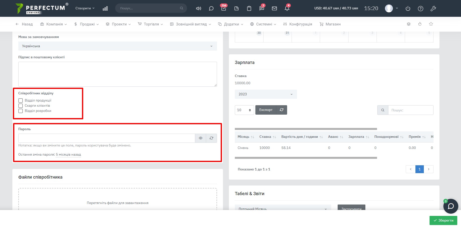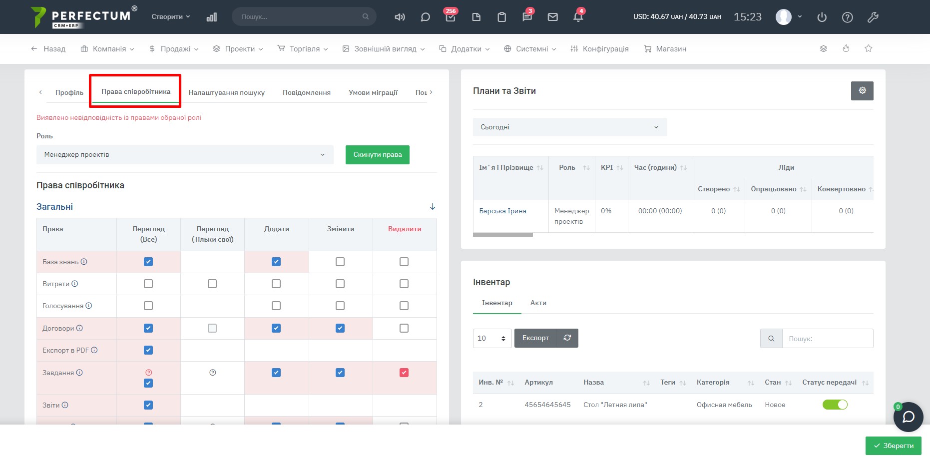 - Вибір прав співробітника(Вас) (якщо не обрано роль або співробітник(Ви) не є адміністратором)