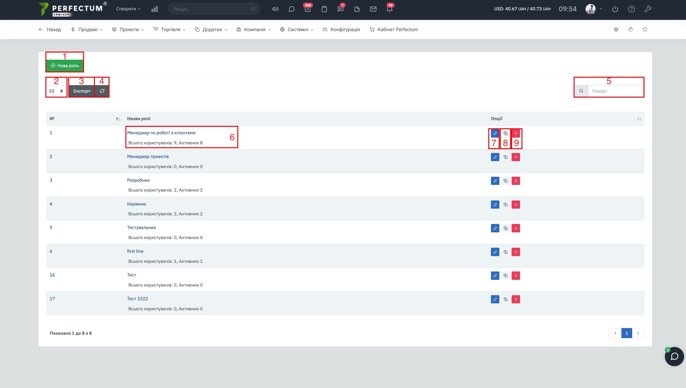 Перед тим, як додати співробітників до Perfectum CRM+ERP, рекомендуємо створити їхні ролі (права доступу) для стандартизації, прискорення процесу створення співробітників, обмеження доступу до розділів або функцій системи.