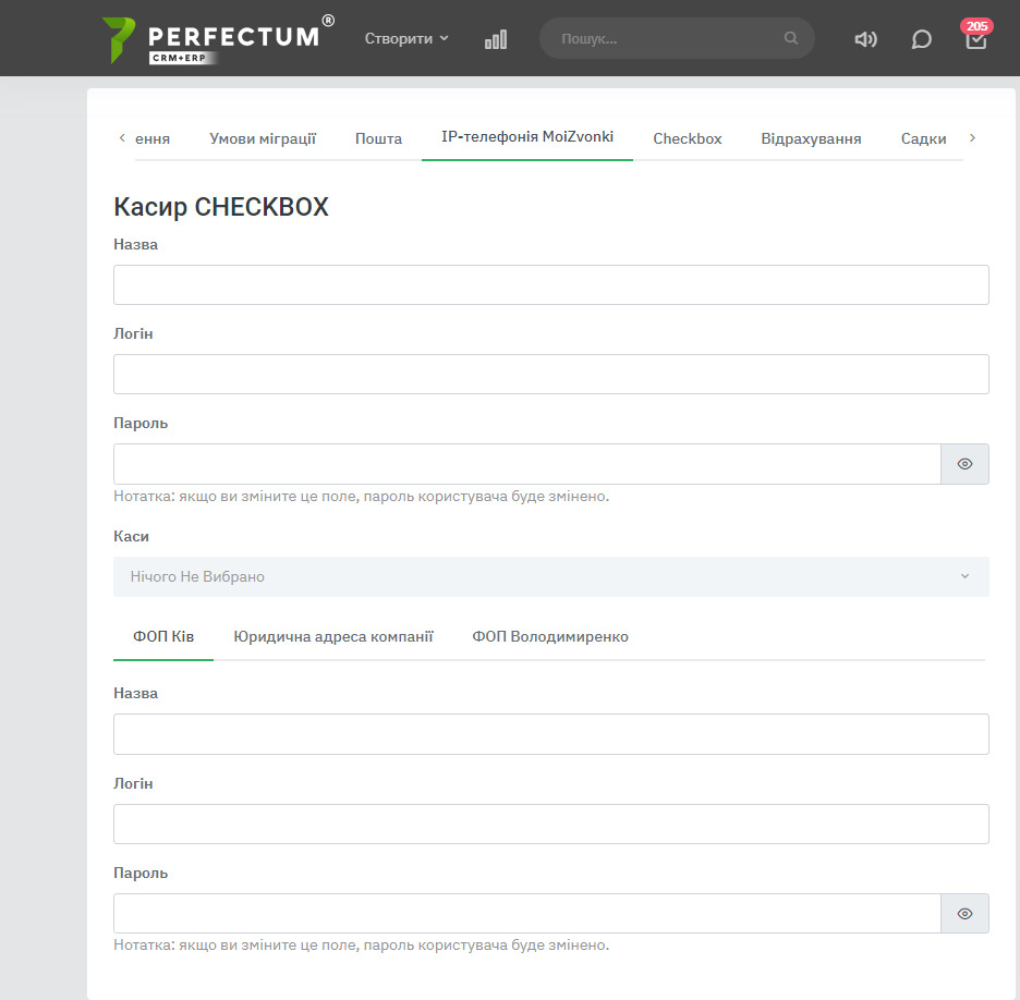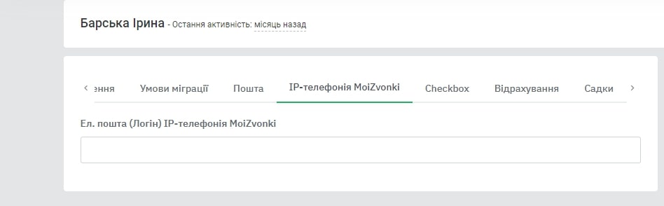 У цій вкладці можна налаштовувати логін та пошту для входу в IP телефонію MoiZvonki.