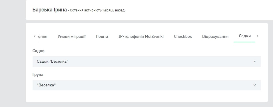 У цій вкладці є можливість вибрати садок та групу переглянути учасників додавати їх та редагувати дані.
