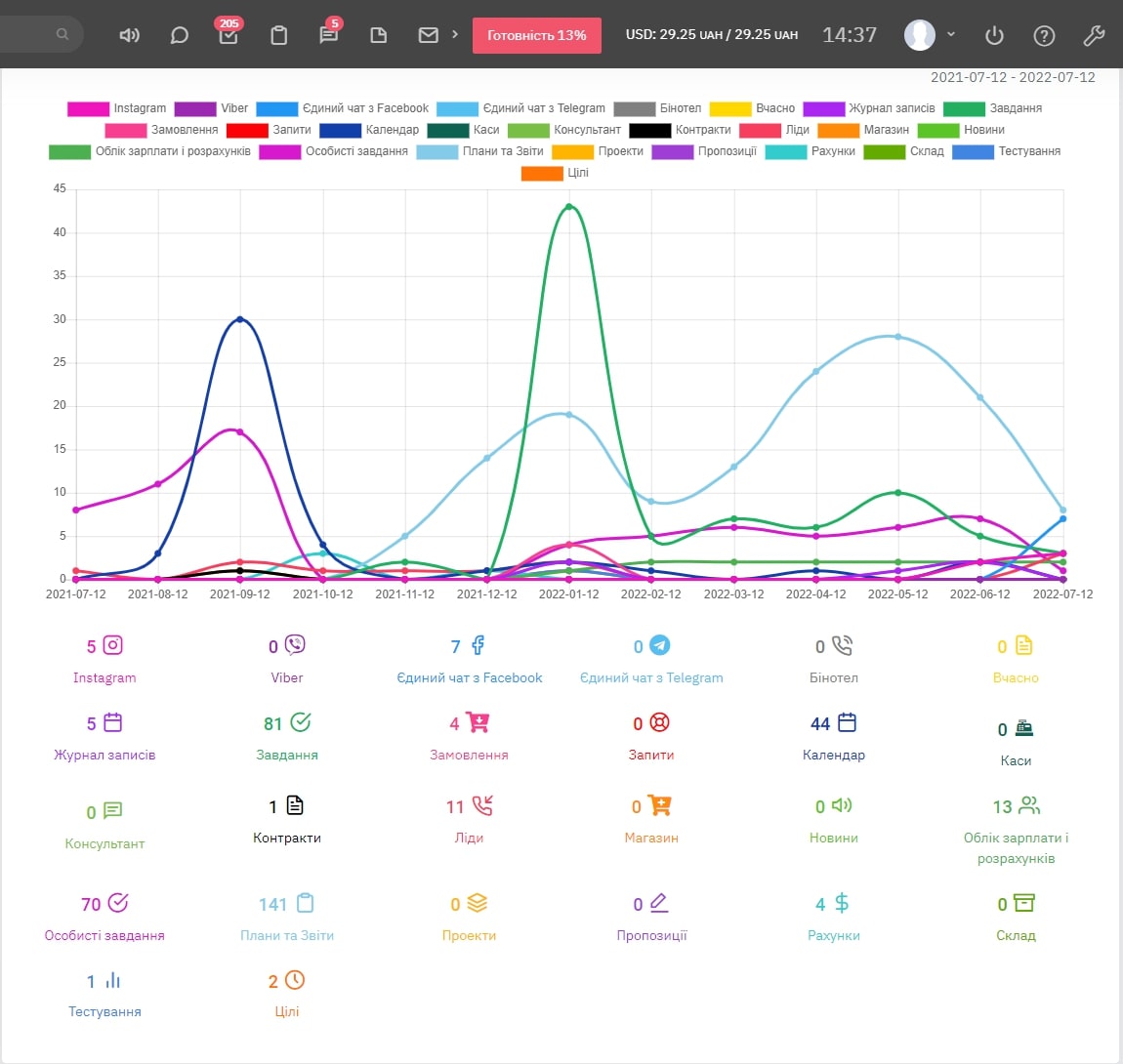 Фільтр графіка повідомлень передбачає налаштування за якими подіями співробітник отримуватиме повідомлення. Відображаються повідомлення на шляху: Активності -> Повідомлення.emlpoyees