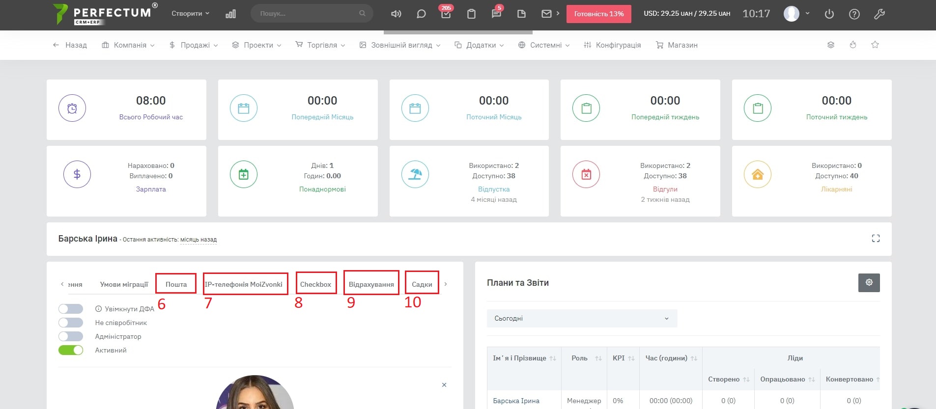 5. Ліди – всі ліди співробітника будуть закріплені за новим співробітником;