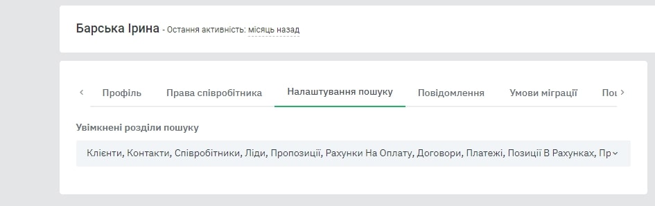 У цій вкладці ви зможете редагувати умови, за якими співробітник зможе здійснювати пошук.