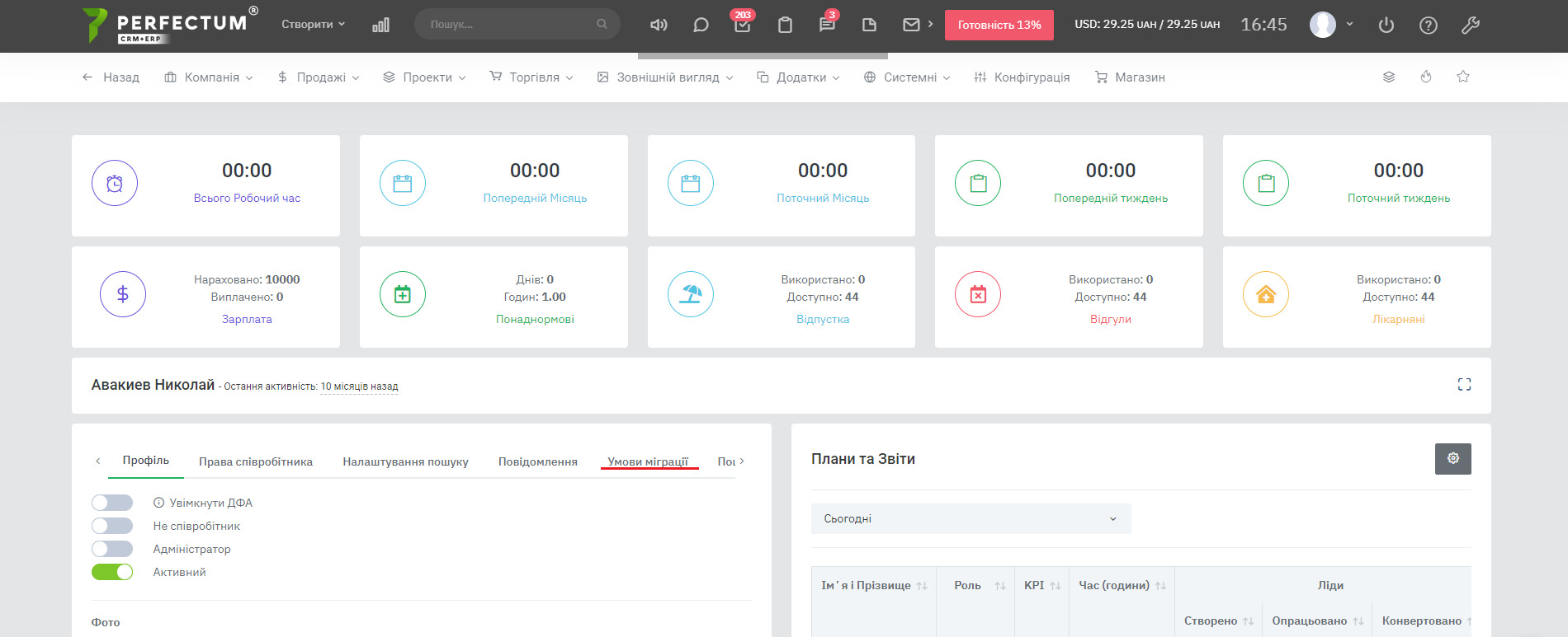У цій вкладці ви зможете налаштувати міграцію для співробітника
