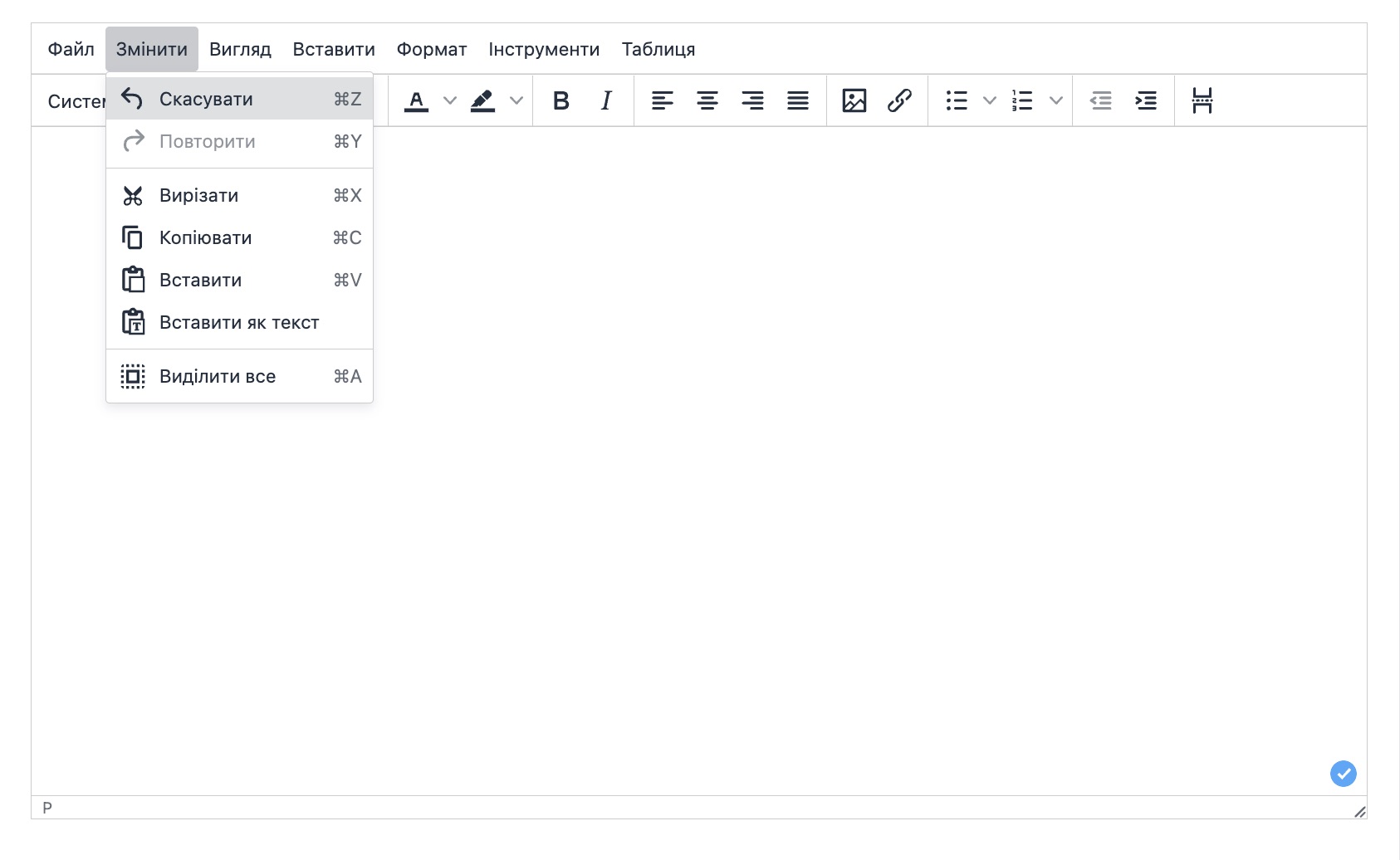 - Скасувати - скасовує останню дію в редакторі.
