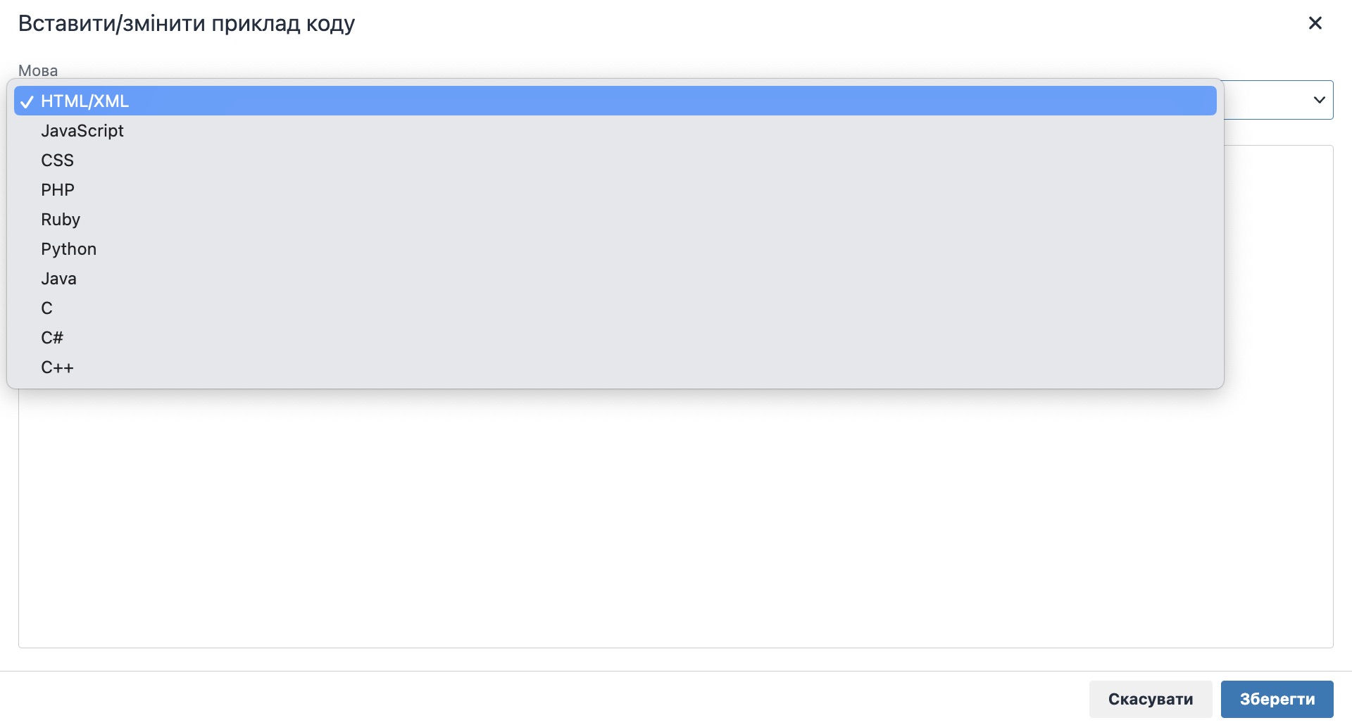 При вставці/редагуванні прикладу коду необхідно: