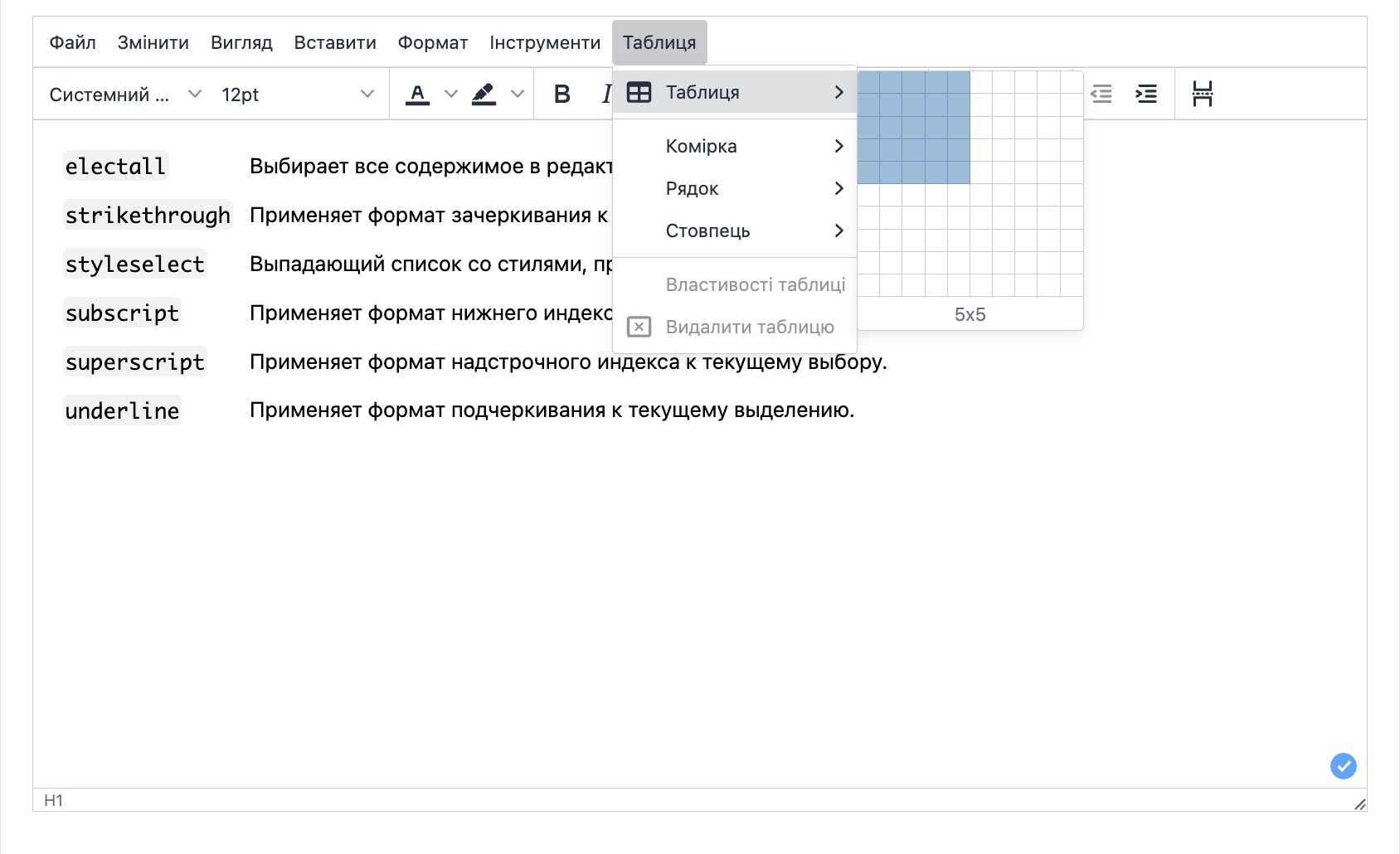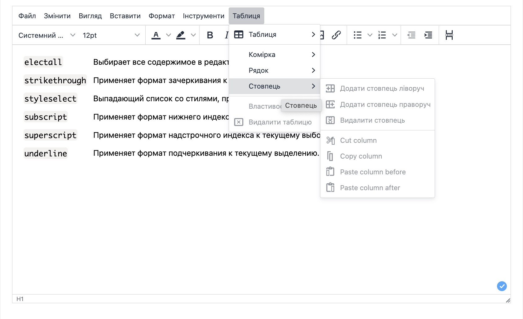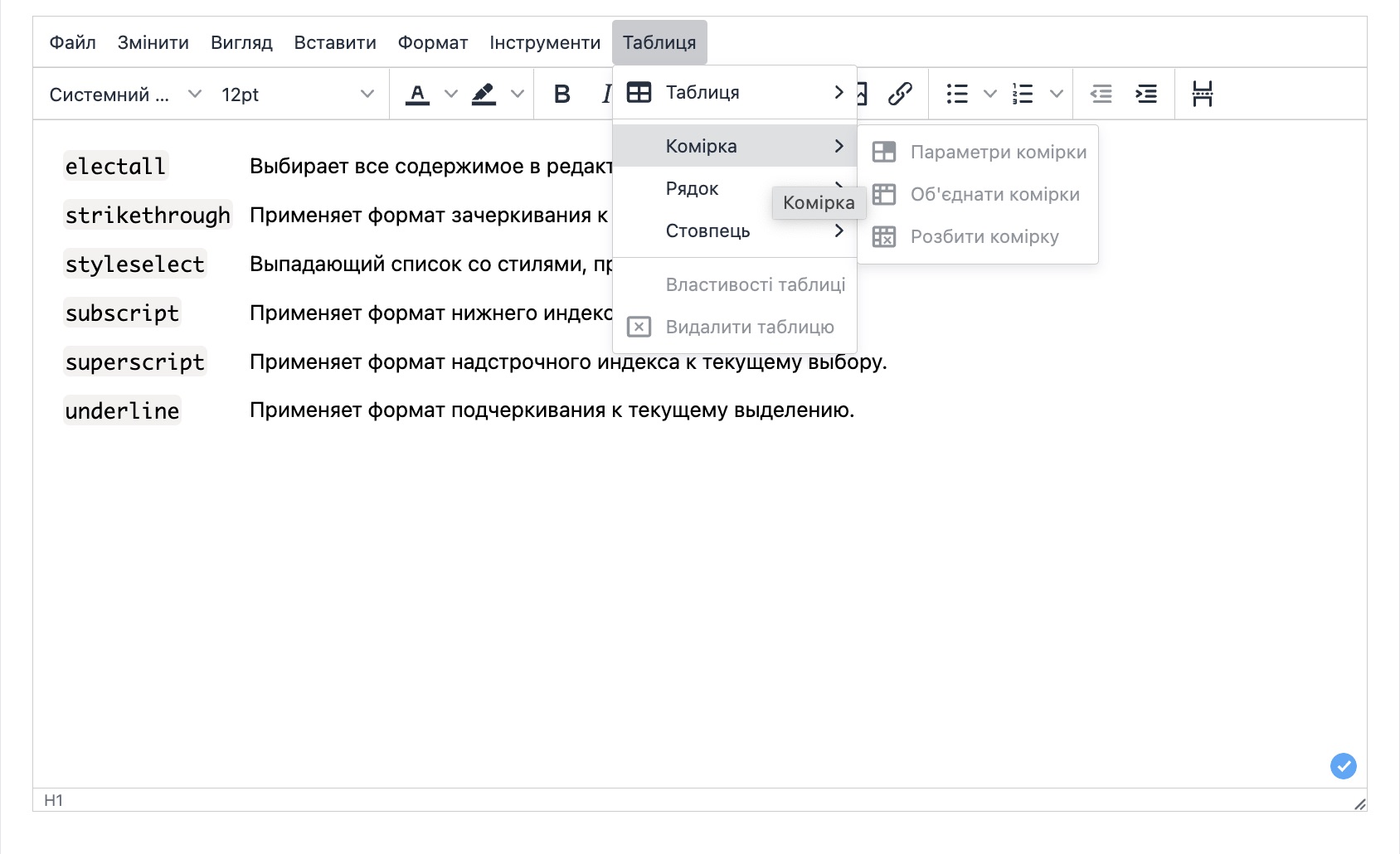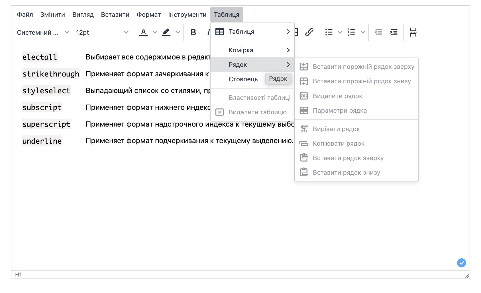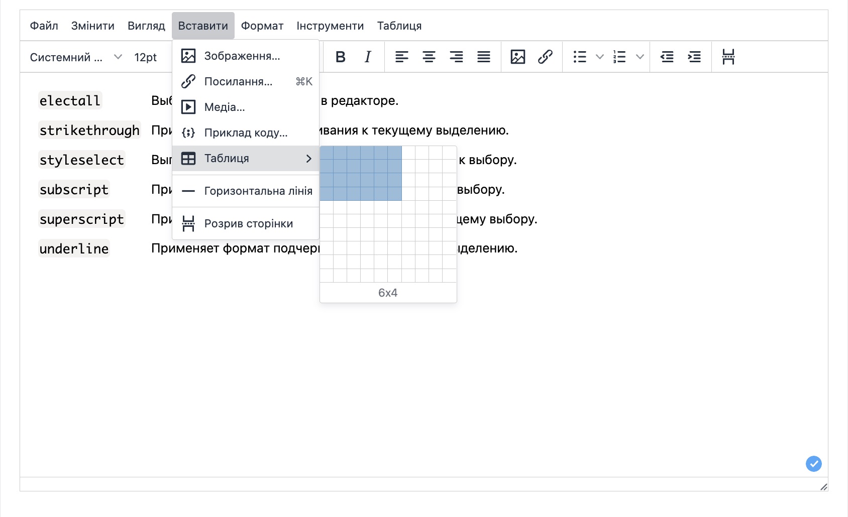 Доступні можливості редактора тексту