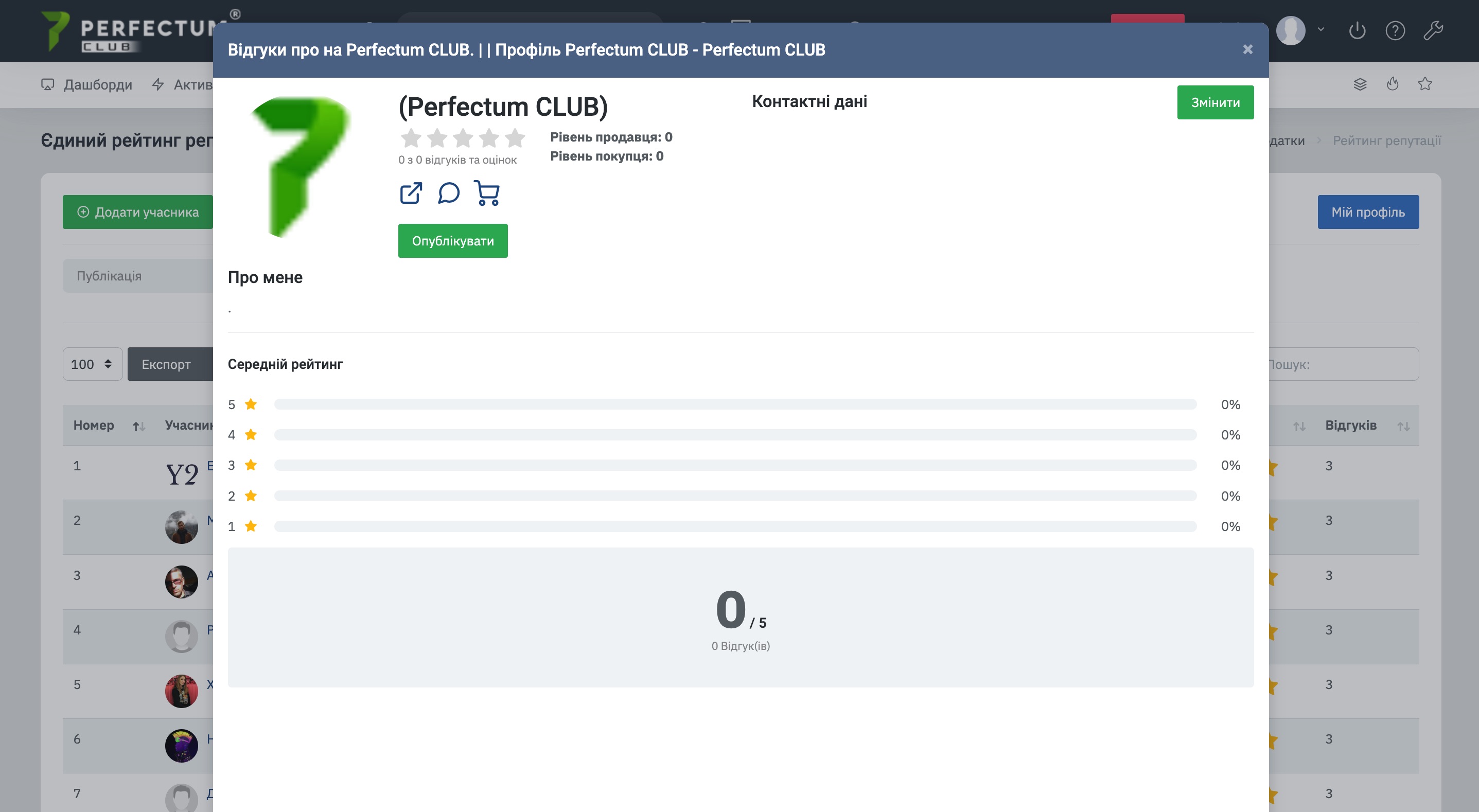 Рейтинг репутації - це загальний рейтинг продавців лотів, в якому автоматично відображаються всі продавці Perfectum Club, а також є можливість додавати відгуки на зовнішніх продавців, якщо їх немає в системі.