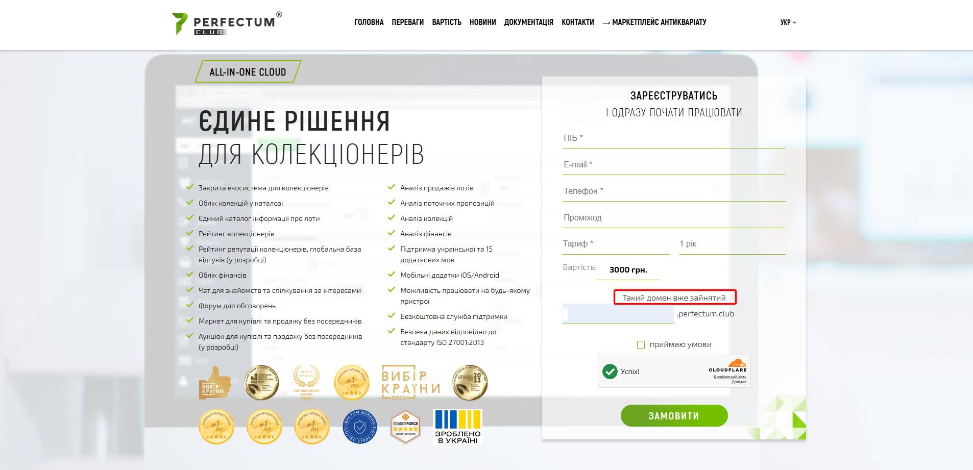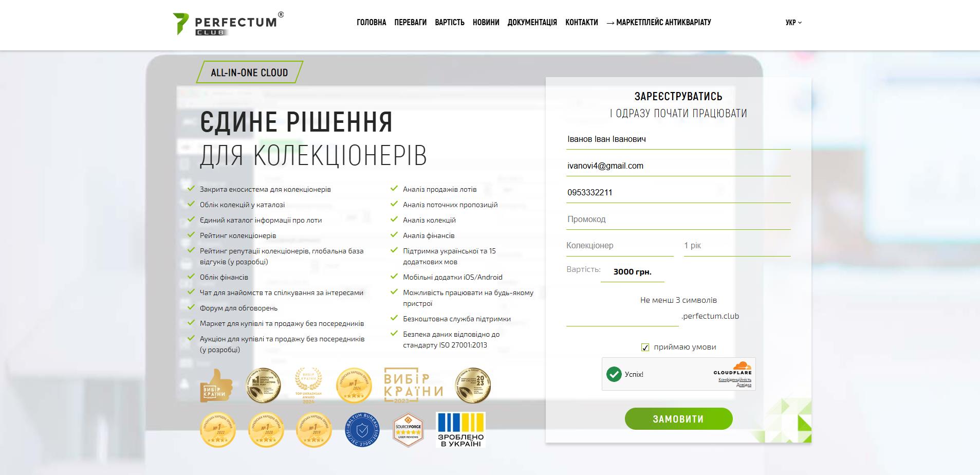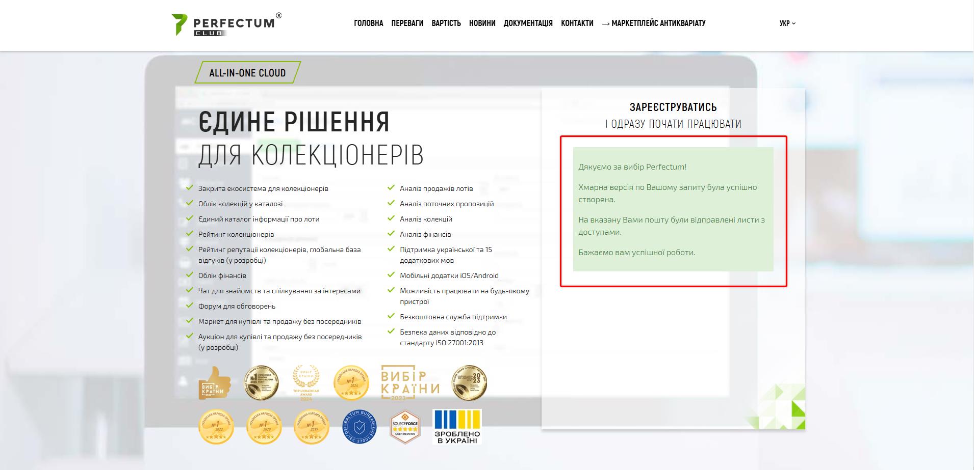 Для реєстрації хмарної версії CMS Perfectum CLub необхідно перейти за наступним посиланням